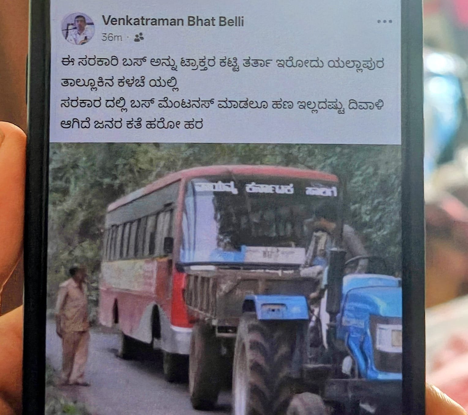 ಯಲ್ಲಾಪುರದ ಕಳಚೆ ರಸ್ತೆಯಲ್ಲಿ ಪ್ರಯಾಣಿಕರು ಸೀಟಿನಲ್ಲಿ ಕುಳಿತು, ಮುಂದುಗಡೆ ಟ್ರಾಕ್ಟರ್ ಡ್ರೈವರ್ ಗೇರ್ ಬದಲಾಯಿಸುವುದನ್ನು ನೋಡುತ್ತಾ ಹೋಗುವ ಭಾಗ್ಯ ಪಡೆದಿದ್ದಾರೆ. ಇದು ಕೇವಲ ಪ್ರಯಾಣವಲ್ಲ, ಇದೊಂದು ರೋಮಾಂಚಕ ಸಾಹಸಯಾತ್ರೆ. ಬಸ್ಸು ಗುಜರಿ ಸೇರುವ ಸ್ಥಿತಿಯಲ್ಲಿದೆ ಎಂದು ಜನ ಆಡಿಕೊಳ್ಳುವ ಅಗತ್ಯವಿಲ್ಲ. ಏಕೆಂದರೆ ಗುಜರಿ ಸೇರಿದ ಮೇಲೂ ಅದನ್ನು ಟ್ರಾಕ್ಟರ್ ಮೂಲಕ ಎಳೆಸಿ ಓಡಿಸಬಲ್ಲ ಛಾತಿ ನಮ್ಮ ಆಡಳಿತ ವ್ಯವಸ್ಥೆಗೆ ಇದೆ. ದುರಸ್ತಿಗೆ ಹಣವಿಲ್ಲದಿದ್ದರೆ ಏನಾಯಿತು? ದೇಸಿ ಜುಗಾಡ್ ತಂತ್ರಜ್ಞಾನ ಇರುವಾಗ ಚಿಂತೆಯೇಕೆ?