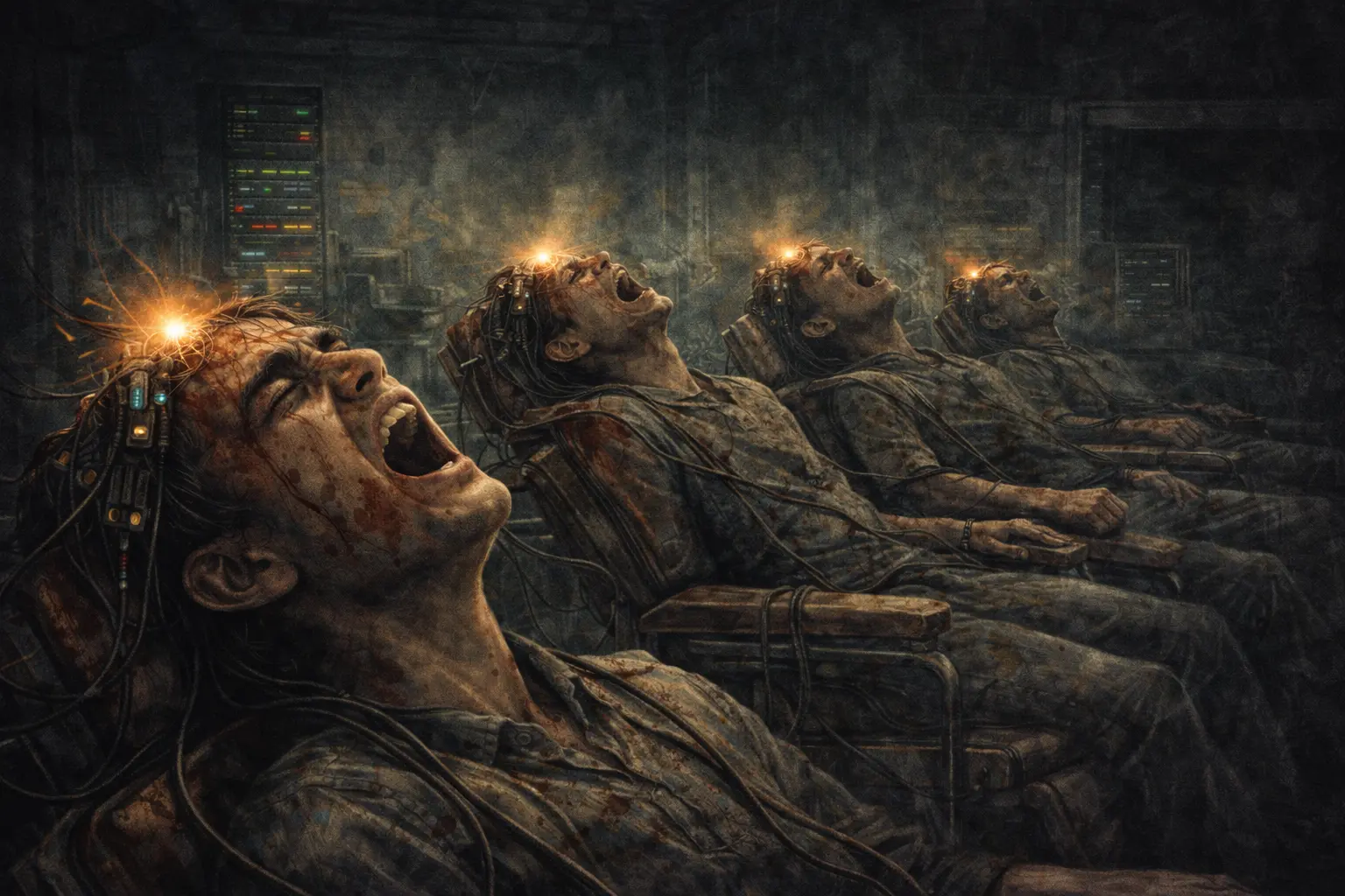 ವಿಕ್ರಮ್ಗೆ ತಲೆ ಭಾರವಾಯಿತು. ಅವನ ದೇಹ ಮರಗಟ್ಟಲು ಶುರುವಾಯಿತು. ಆದರೆ ಅವನ ಪ್ರಜ್ಞೆ ಇನ್ನೂ ಇತ್ತು. ಅವನು ಕಣ್ಣುಗಳನ್ನು ಮಾತ್ರ ಅತ್ತಿತ್ತ ಹೊರಳಿಸಬಲ್ಲವನಾಗಿದ್ದ. ಆಗ ರುದ್ರ ಒಂದು ಲೋಹದ ಟ್ರೇ ಎಳೆದುಕೊಂಡ. ಅದರಲ್ಲಿ ಚಿಕ್ಕ ಡ್ರಿಲ್ ಮಷಿನ್ ಮತ್ತು ಐದು ಕಪ್ಪು ಬಣ್ಣದ ಚಿಪ್ಗಳು ಇದ್ದವು. ಅವು ಇಂದಿನ ನ್ಯೂರೋಲಿಂಕ್ ಚಿಪ್ಗಳಿಗಿಂತ ದೊಡ್ಡದಾಗಿದ್ದವು ಮತ್ತು ಹೆಚ್ಚು ಒರಟಾಗಿದ್ದವು.
