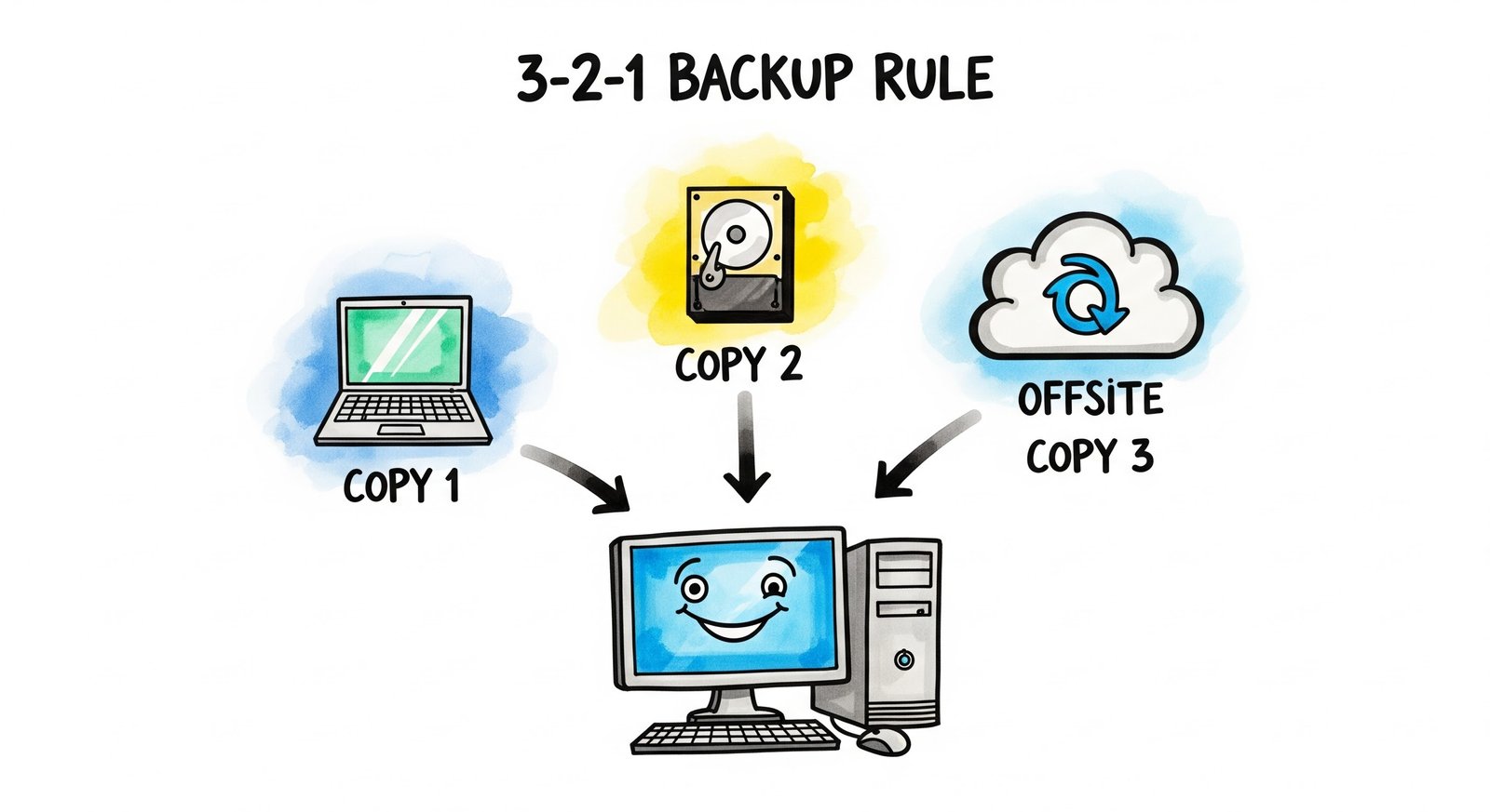If you care about your work, you need to follow the "3-2-1 Backup Rule." This is the religion of data hoarders and IT professionals. It is the only way to sleep soundly at night.
